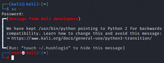 하지만 시스템 관리자 계정은 root이므로 kali 계정으로는 제한적인 작업을 수행할 수 밖에 없다.