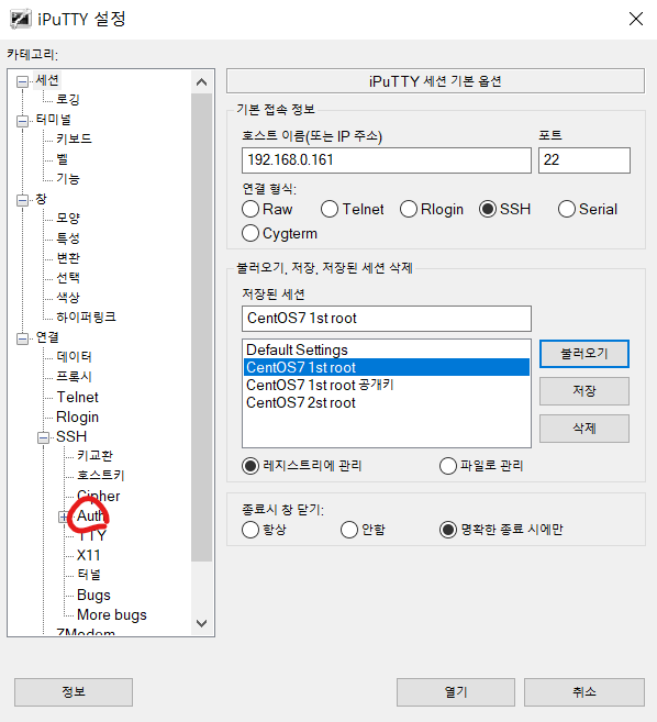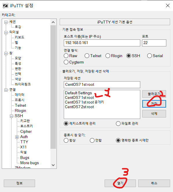 putty에 저장된 값을 불러오는 것을 물어보는 것이다. 불러오면 편하다)