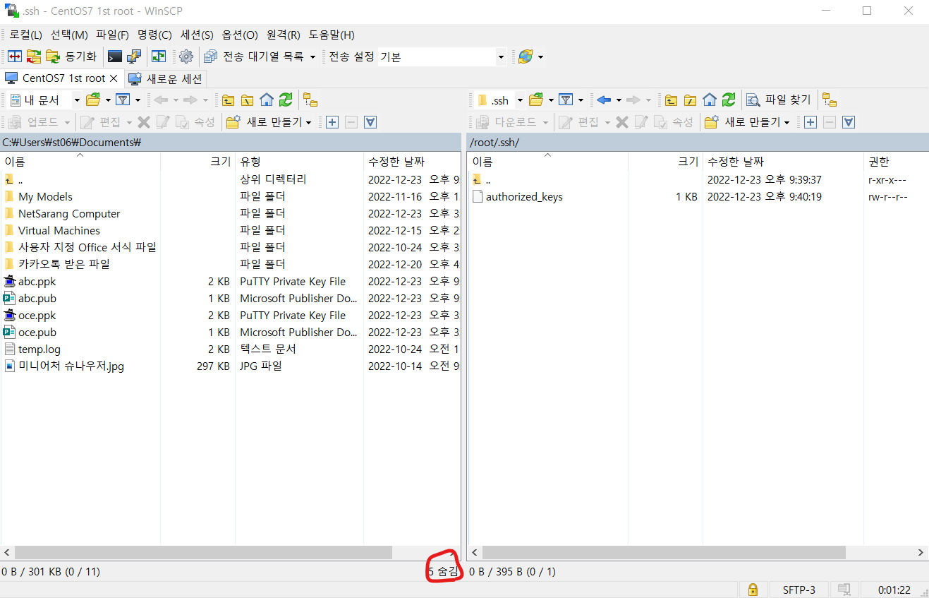 이제 WinSCP를 사용해 공개키를 이동시켜야 한다.