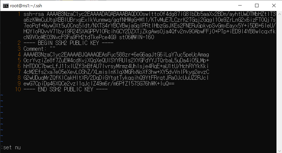 Athorized_keys는 여러 줄인데 한 행이라고 뜨는 이유는 한 줄이기 때문이다.